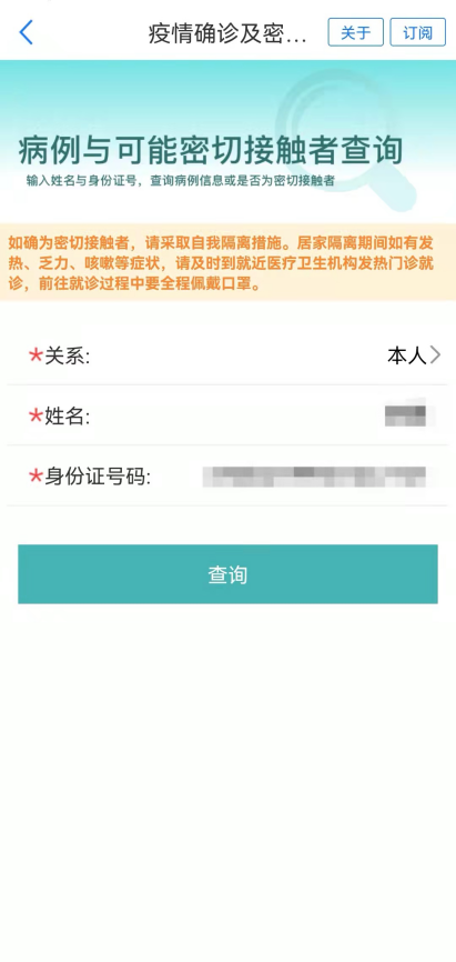 疫情确诊及密接查询,密接风险自查,及时知晓。