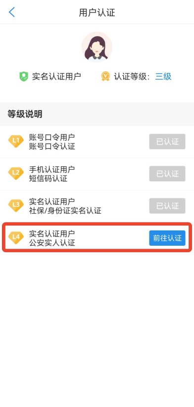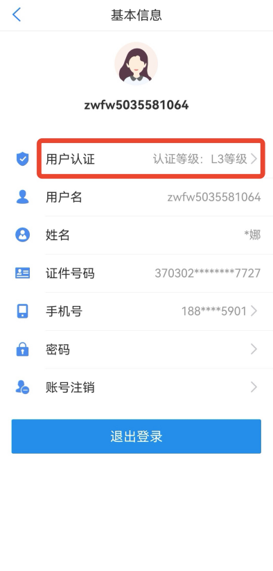 3、注册账号并登录后,须完成账户实名认证。点击进入【我的】页面最上方个人信息板块,点击【用户认证】,根据提示逐步完成实名认证。