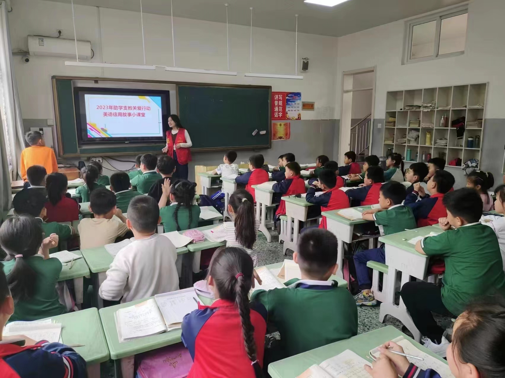 “季布是汉朝人,他以真诚守信着称于世。古人云“得黄金百斤,不如得季布一诺。”“北宋词人晏殊,素以诚实著称”小课堂中,宣讲员和孩子们一起分享读书心得,交流自己在学习、生活中成长的故事以及在诵读美德信用小故事后给自己带来的潜移默化的影响。同学们也纷纷讲述自己知道的美德信用小故事,从不同角度阐释对诚信的理解,小故事题材多样,事例典型,生动感人,向我们诠释了诚信对于一个国家、一个社会、一个人的重要性。分享美德故事让孩子们从内心明白了所有的事情,需要从点点滴滴的小事做起,而不是仅仅停留在口头上,必须要付出实际行动。活动结束后,学生们纷纷表示自己以后也要做弘扬美德讲信用的人。