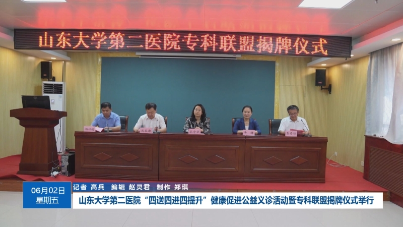 6月1日,山东大学第二医院“四送四进四提升”健康促进公益义诊活动暨专科联盟揭牌仪式在县中医院举行。山东大学第二医院党委副书记孔令华、县政府副县长牛梅出席,并为山东大学第二医院心血管内科专科联盟、脊柱外科专科联盟、神经内科专科联盟揭牌。