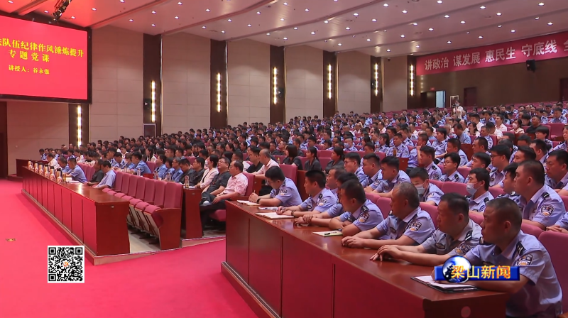 6月30日上午,我县在梁山会堂举办全县政法队伍纪律作风锤炼提升专题党课,县委书记谷永强为全县政法干警上了一堂精彩的专题党课。县委常委、县委办公室主任、政法委书记张林勇主持,县政府副县长、公安局局长王东升参加。