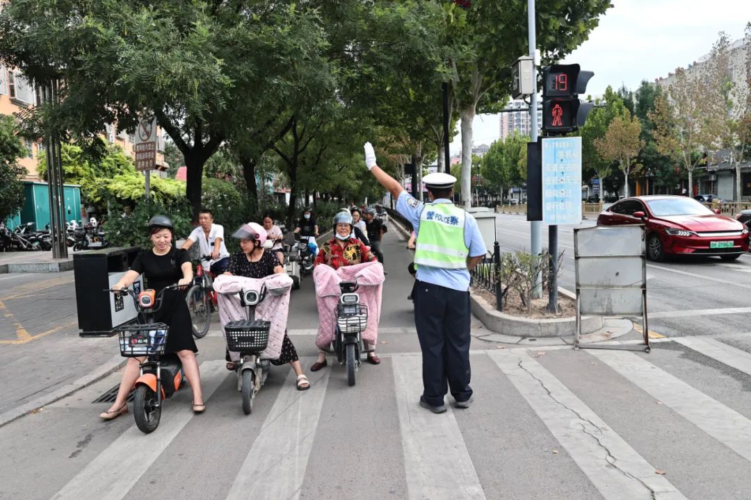 指引送学生的家长按照规定即停即走,执勤人员提醒过往车辆减速慢行,有序疏导接送学生车辆安全快速通过学校门前路段。