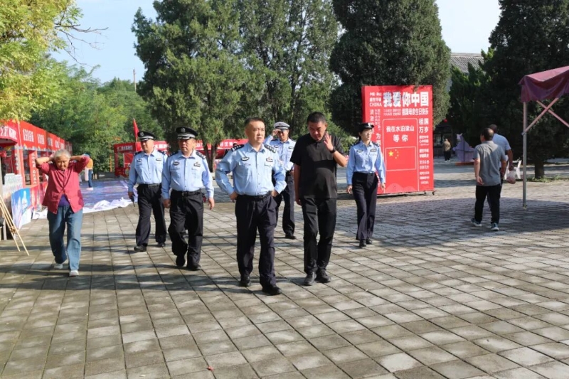 10月1日,副县长、公安局局长王东升到水泊梁山风景区督导国庆假期安保工作,党委委员、副局长闫新福参加活动。
