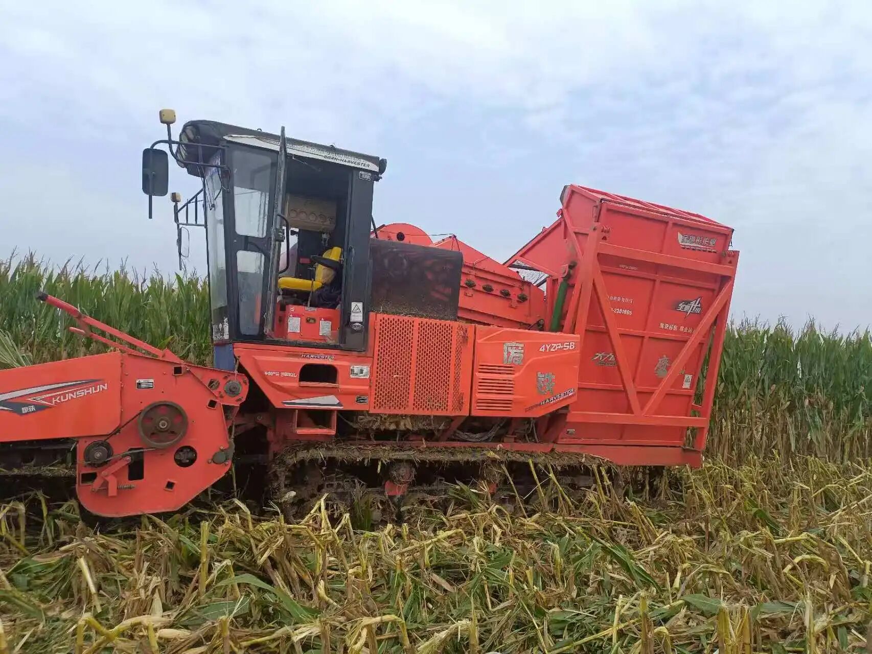 针对土壤湿度过大导致轮式机械难进地的问题,拳铺镇整合辖区农机合作社资源,紧急调度 8 台履带式收割机投入作业,大幅提升泥泞地块通行能力。在信楼乡村振兴片区玉米种植基地,履带式收割机正穿梭田间,收割、脱粒一气呵成。