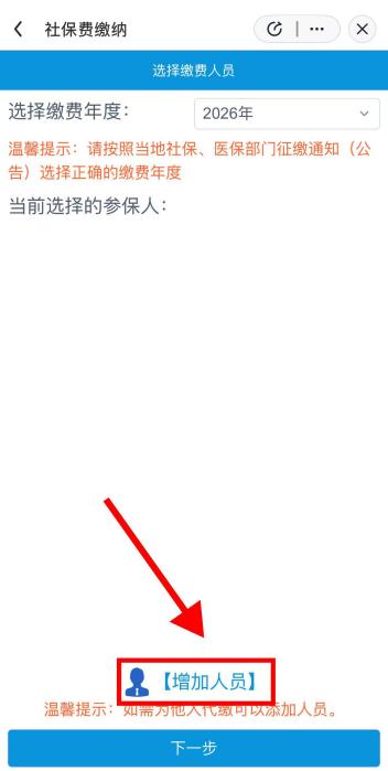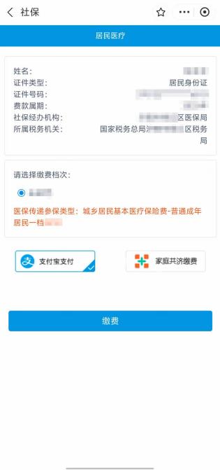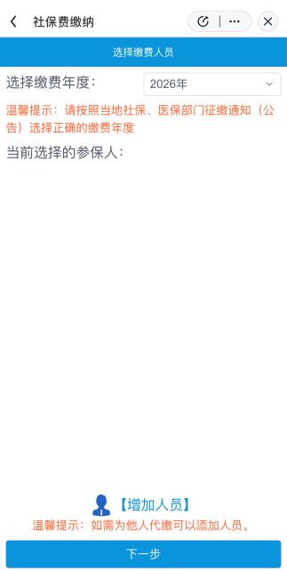 4.选择缴费年度与参保人,点击“下一步”,确认缴费档次及支付方式即可进行缴费。(各地市个人缴费金额档次以当地发布的通知为准)