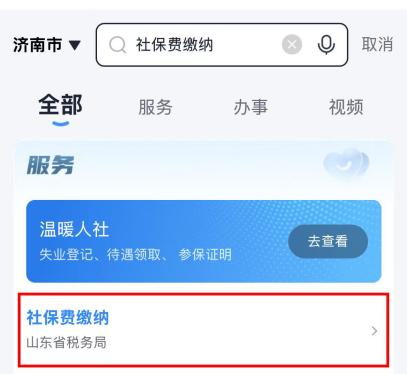 1.打开“爱山东”APP、支付宝、微信小程序,首页搜索“社保费缴纳”,点击进入服务。