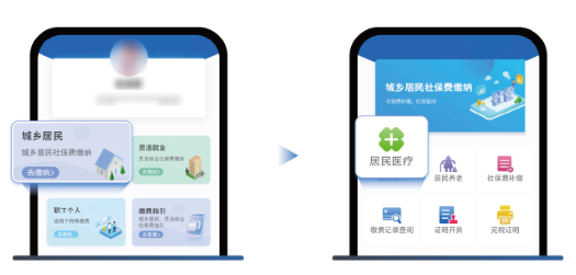2.选择“城乡居民-去缴纳”,点击进入“居民医疗”缴费流程。