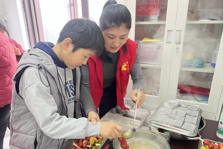 梁山县水泊街道青龙山社区开展手工制作糖葫芦活动