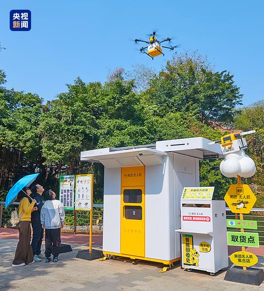△2025年1月20日,深圳,世界之窗景区,旅客体验无人机送外卖服务。