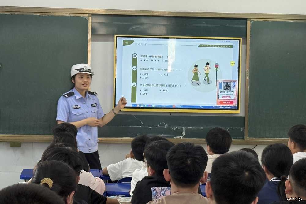 活动中,宣传民警利用精心制作的PTT,结合学生年龄特点、理解能力、交通环境等相关要素,通过展示交通标志、标牌,采用现场提问、抢答等互动方式,用通俗易懂的语言,深入浅出地讲述了一系列交通规则,零距离向同学们讲解如何安全过马路、如何识别交通标志及其作用、如何安全乘车等安全常识,特别是针对孩子容易横穿道路、在道路上逗留,玩耍、乘车时将头或手伸出车窗外等一些列危险行为的危害性做了着重宣传引导。同时向同学们深入宣传“一盔一带”、“知危险,会避险”等交通安全知识,剖析交通违法行为的危害性,叮嘱同学们牢记交通安全法规,树立安全出行意识,培养良好的出行习惯。