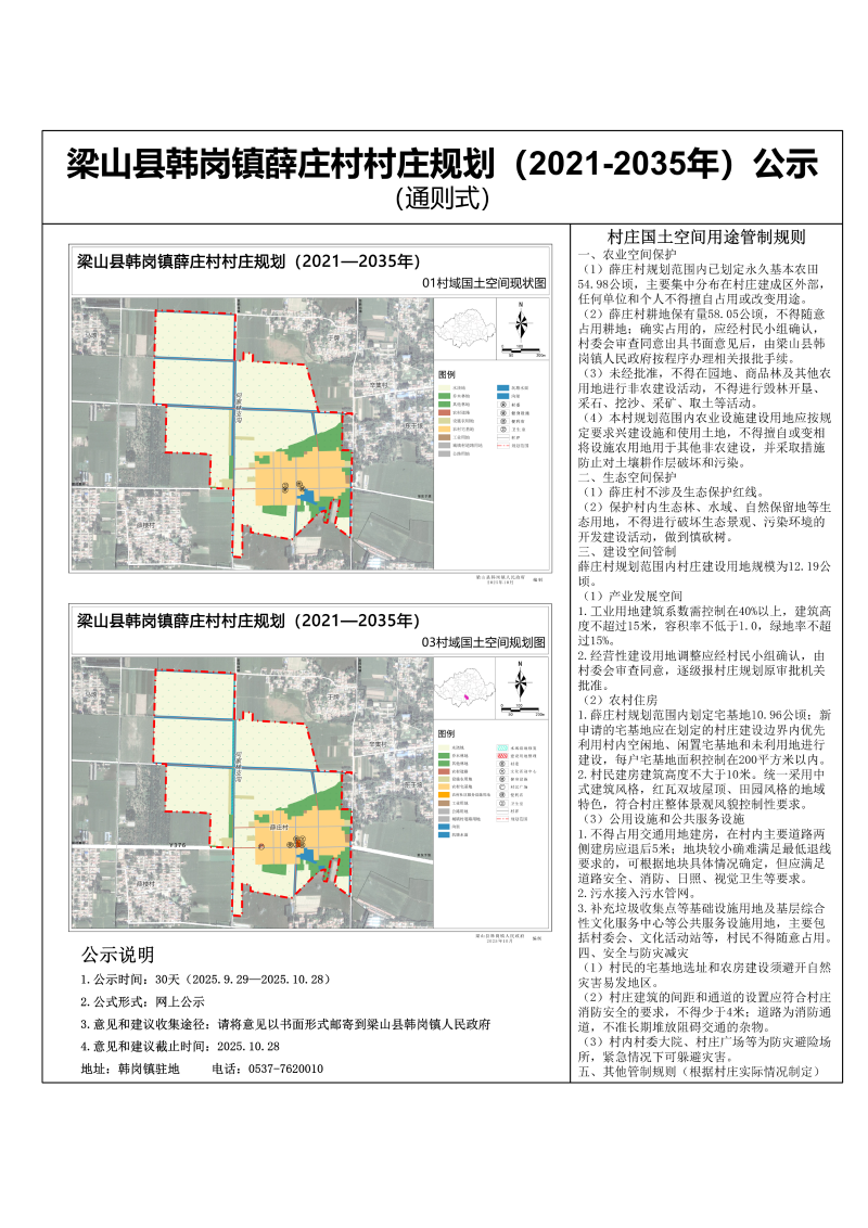 梁山县韩岗镇薛庄村村庄规划(2021-2035年)公示