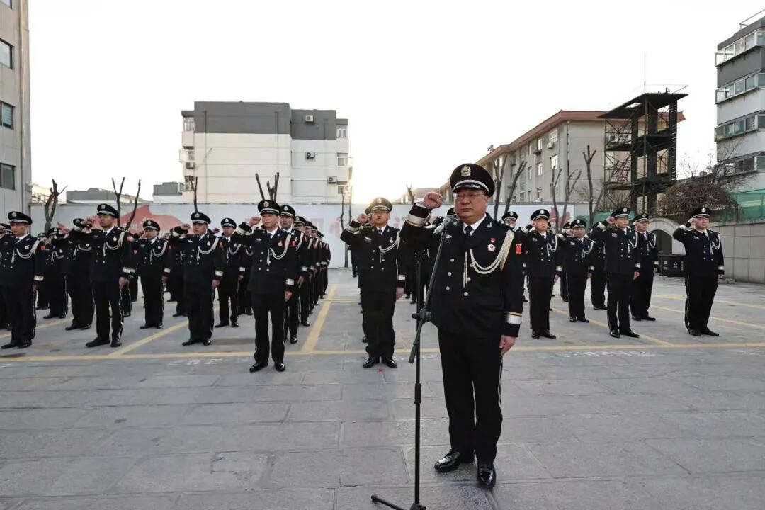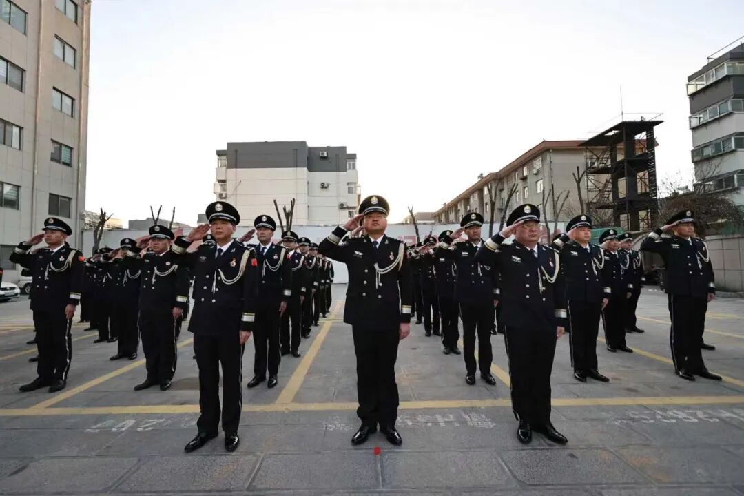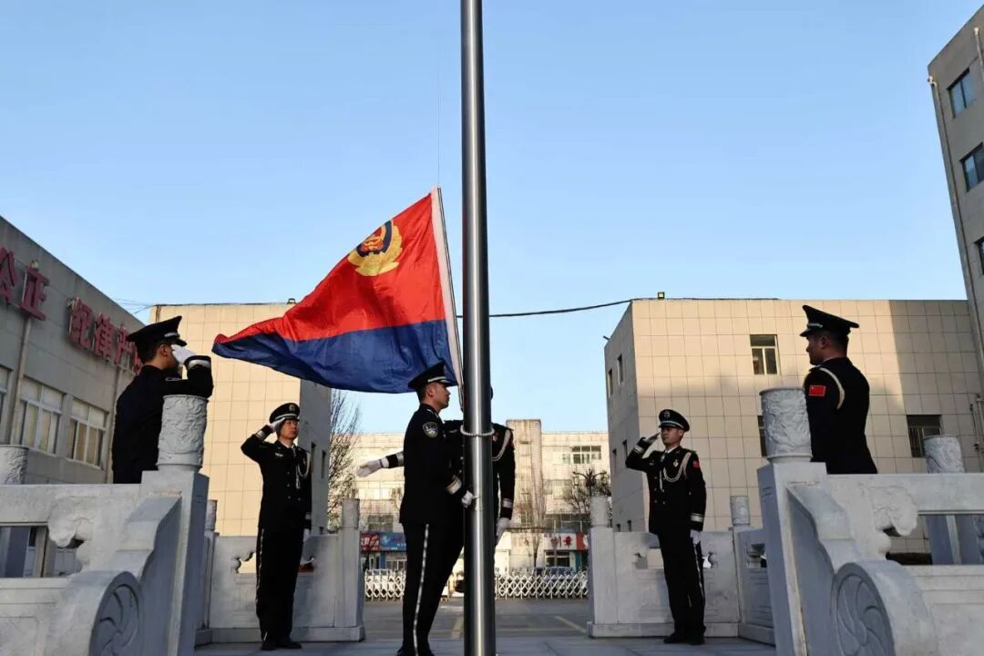 上午8时,参加仪式的全体民警身着整洁的警礼服,精神饱满、身姿挺拔,在晨光中肃然列队。在铿锵有力的口令声中,护旗民警目光坚定、步伐整齐,护卫着鲜艳的中国人民警察警旗正步行进至升旗台前。伴随着庄严雄壮的《中国人民警察警歌》奏响,擎旗手挥臂展旗,红蓝相间的警旗迎着朝阳冉冉升起。全体民警面向警旗庄严敬礼,以无声的誓言致敬警察节,致敬肩负的使命与担当。随后,激昂的宣誓声回荡在现场,全体民警重温入警誓词,字字铿锵,信念如磐。