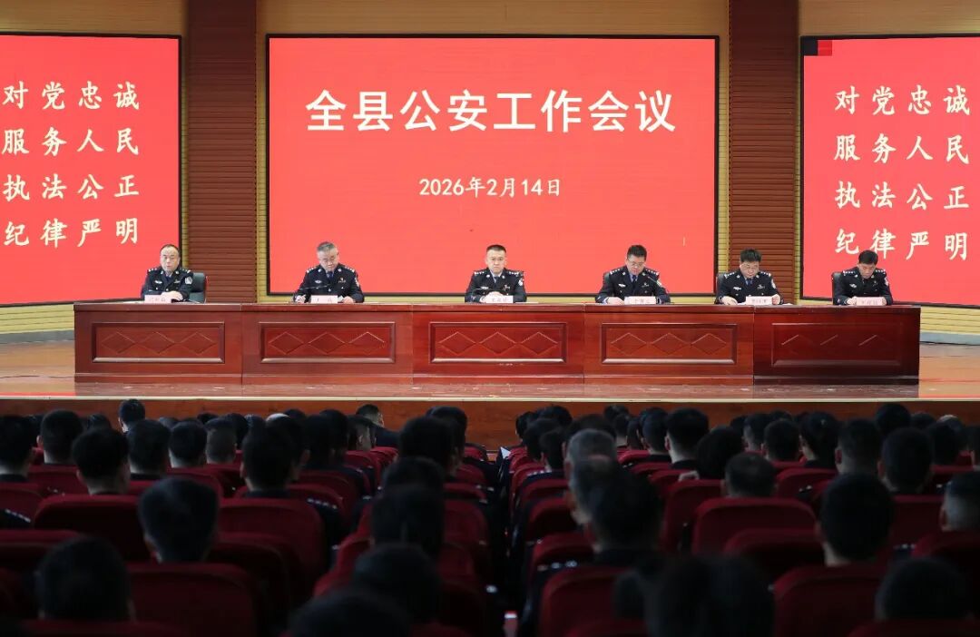 2月14日,全县公安工作会议召开。会议深入学习贯彻习近平新时代中国特色社会主义思想,全面贯彻党的二十大和二十届历次全会精神,认真落实中央、省委政法工作会议和全国、全省、全市公安局长会议部署要求,总结工作,分析形势,安排部署2026年全县公安重点任务。副县长、县公安局局长王东升出席会议并讲话,县局党委副书记、政委于育生主持会议,县公安局领导班子成员参加会议。