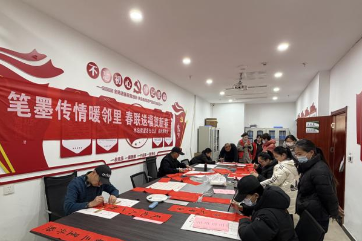 近日,济宁市梁山县水泊街道名仕社区举办“笔墨传情暖邻里 春联送福贺新春”新春写春联活动,辖区书法爱好者、退休教师与居民群众齐聚一堂,在笔墨书香中书写新春期许,传递邻里温情。