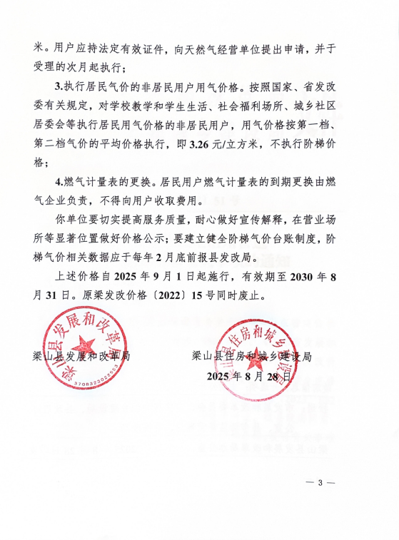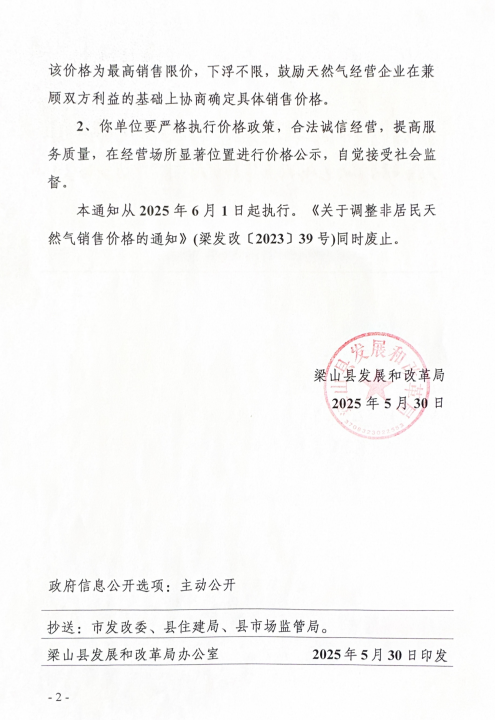 燃气费收缴 | 居民: 第一阶梯2.96元/立方第二阶梯3.55元/立方第三阶梯4.44元/立方 非居民3.99/立方 | 居民根据梁发改〔2025〕51号文 非居民根据梁发改〔2025〕39号文 |